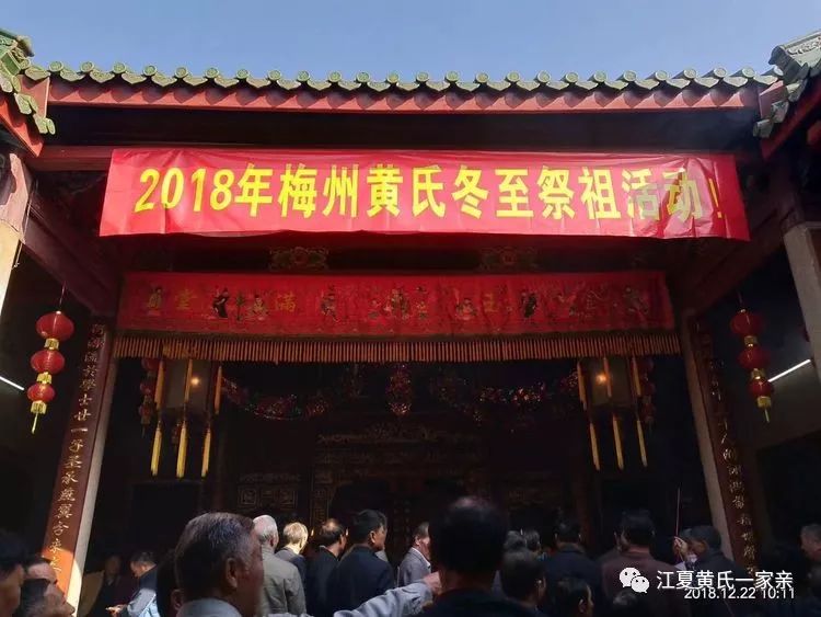 2018年12月22日(戊戍年甲子月戊子)冬至日,是一个值得黄氏家族欢庆的好日子,在广东省梅州黄氏祖祠隆重举行冬至祭祖活动!来自海内外和地区市县的黄氏宗亲汇聚一堂,共同庆祝黄家大喜事!现场场面浩大鼓乐高奏,雄狮喜舞热闹非凡!参祭外地宗亲和梅州各县(市、区)宗亲代表共几千多人(设宴一百多桌),处处洋溢着欢乐喜庆的气氛!各地黄氏宗亲纷纷表示热烈祝贺,感恩祖德天下黄氏一家亲!