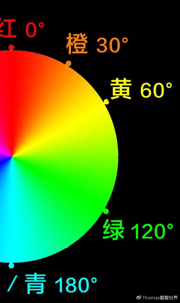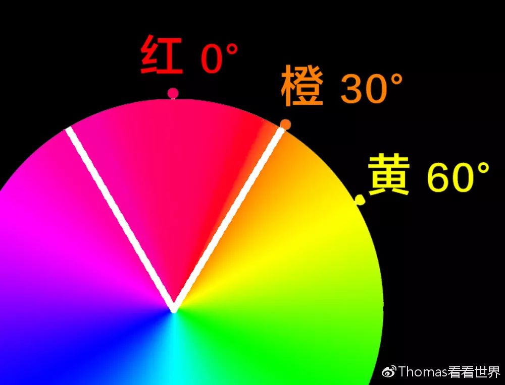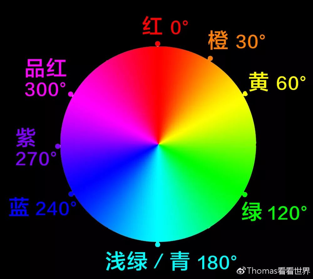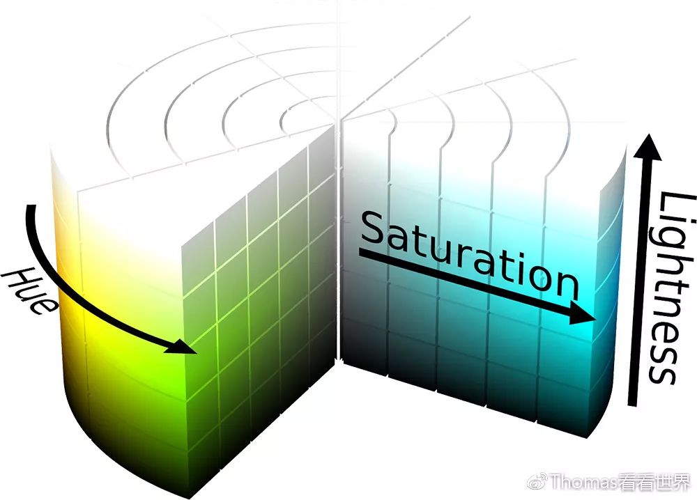 色彩是由色相(Hue)、饱和度(Saturation)和亮度(Lightness)组成的。