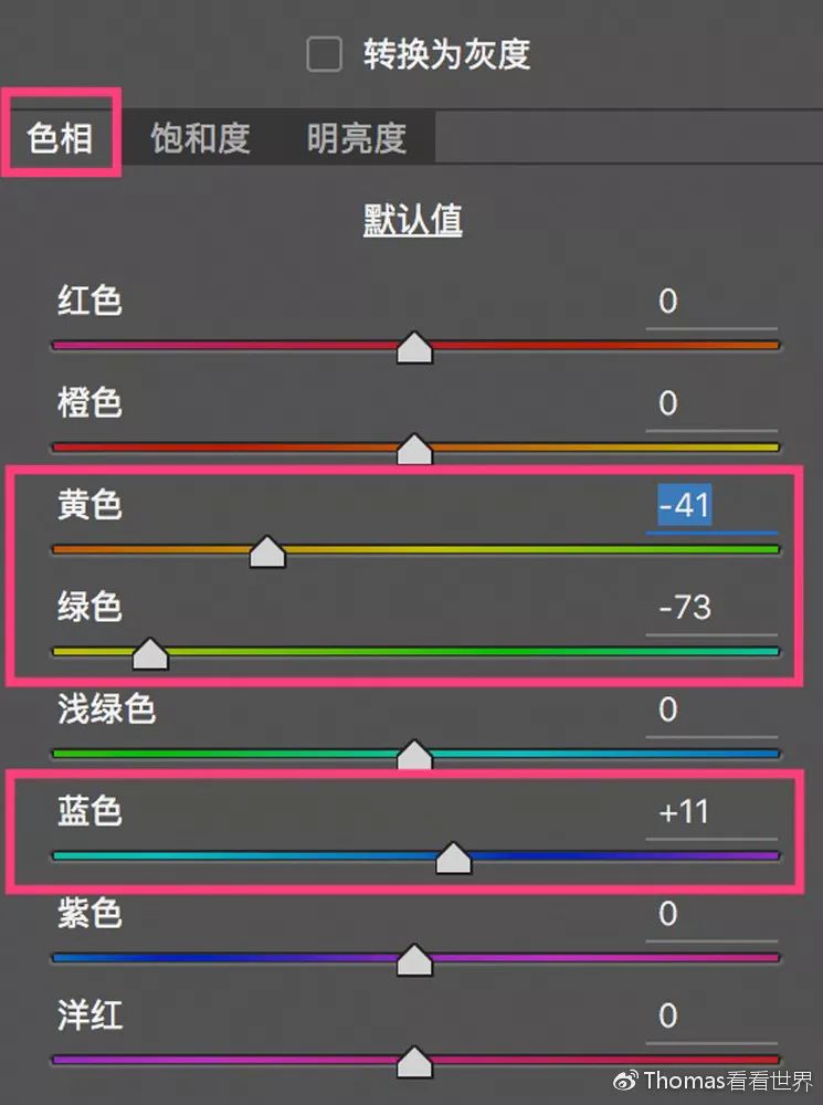 理解了上面两句话,我们就学会了 HSL 的色相调整。