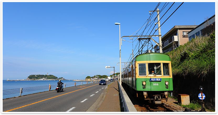 和风不是镰仓的唯一标签,不远的友邻茅崎也把年轻人的荷尔蒙带给了镰仓。毕竟湘南的沿海必定有着纯爱。这纯爱与横滨式的色彩斑斓及充满律动的都市感情区别开来,它总在电车轨道的前后,利用信号灯的颜色来确认心意,又或是在摩托车与自行车的奔驰中完成径直的告白。