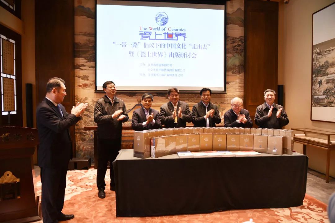 2018年3月2日,《瓷上世界》——“一带一路”倡议下的中国文化“走出去”暨《瓷上世界》出版研讨会上,出席领导、嘉宾代表杨六华(左二)、吴尚之(左三)、单霁翔(左四)、谭跃(右三)、郭建晖(右二)、赵东亮(右一)为《瓷上世界》套书出版发行揭幕。