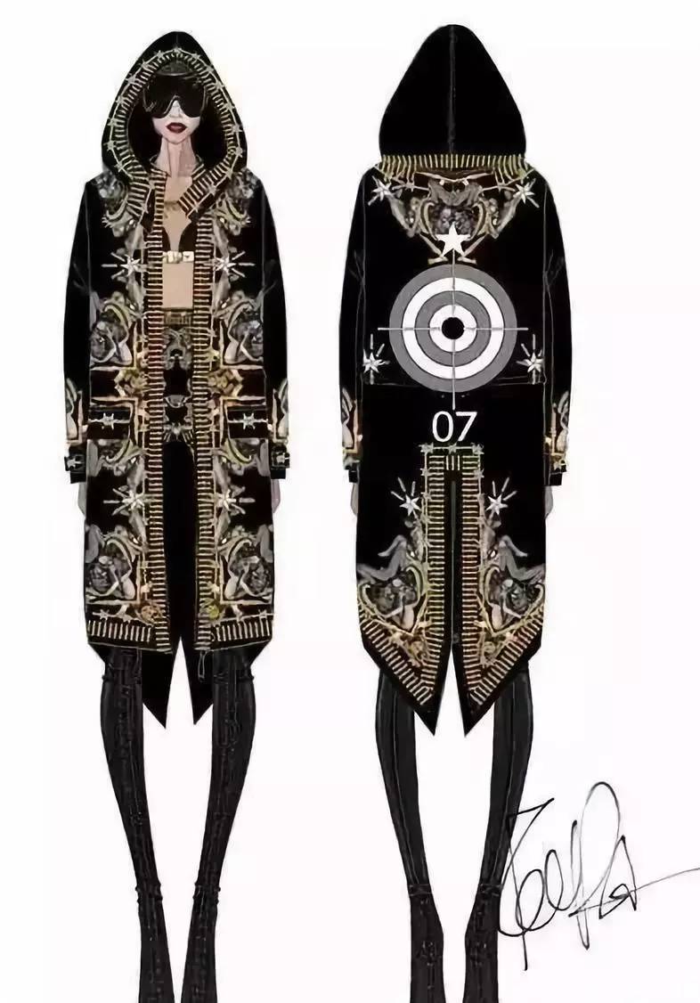 ▲Riccardo Tisci为Rihanna设计的全球演唱会服装手稿图