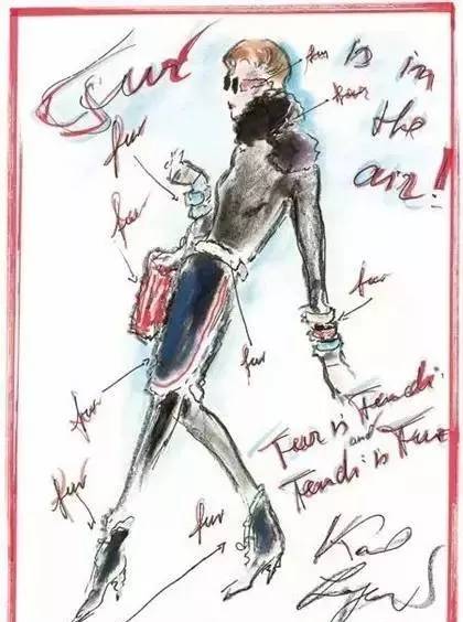 ▲Karl Lagerfeld为Fendi设计的系列时装手稿图