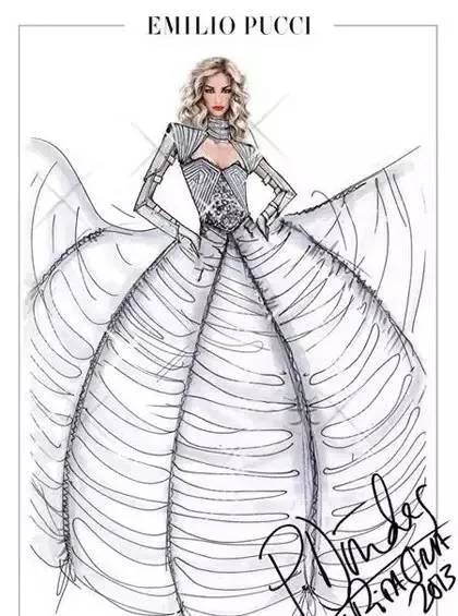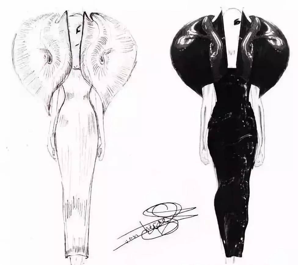 ▲Iris Van Herpen为Lady Gaga设计的服装手稿图