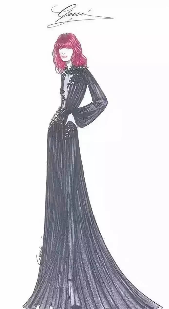 ▲Frida Giannini为Florence Welch设计的舞台服装手稿图