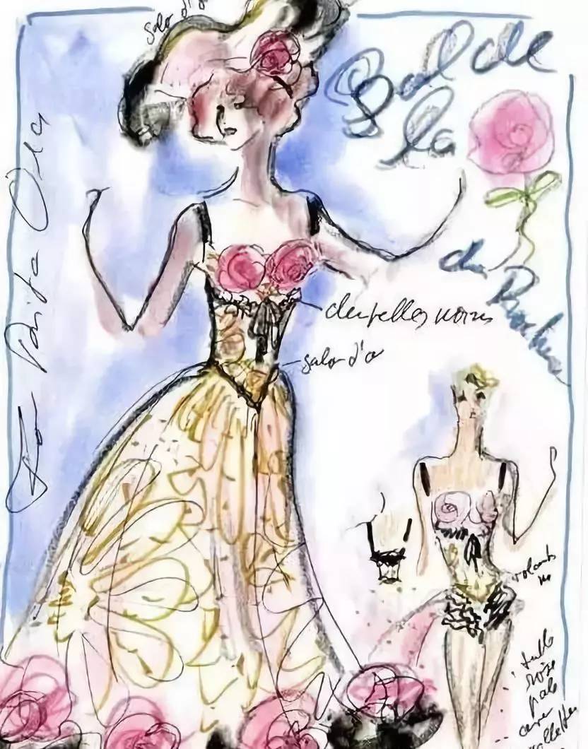 ▲Karl Lagerfeld的慈善玫瑰舞会服装手稿图