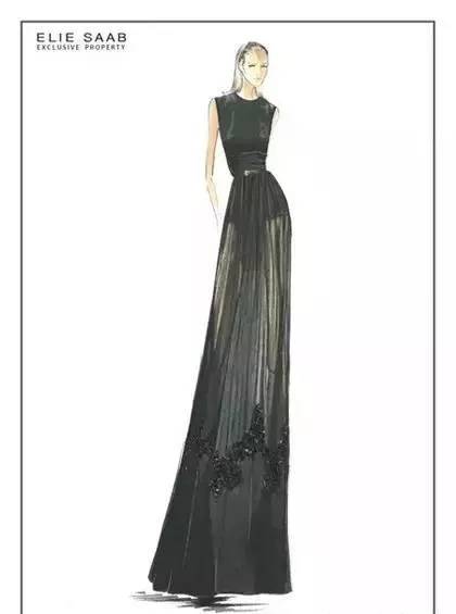 ▲Clare Waight Keller为英国凯特王妃设计的服装手绘图