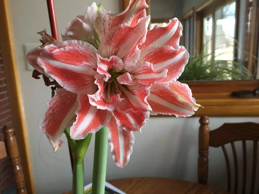 还有一点是要注意,朱顶红不同品种发芽的时间也是不同的,所以养护的时候要有耐心,确保朱顶红长得牢固,避免过度浇水,还要每隔几天转一下花盆,让朱顶红的茎叶生长均匀,避免长歪了。
