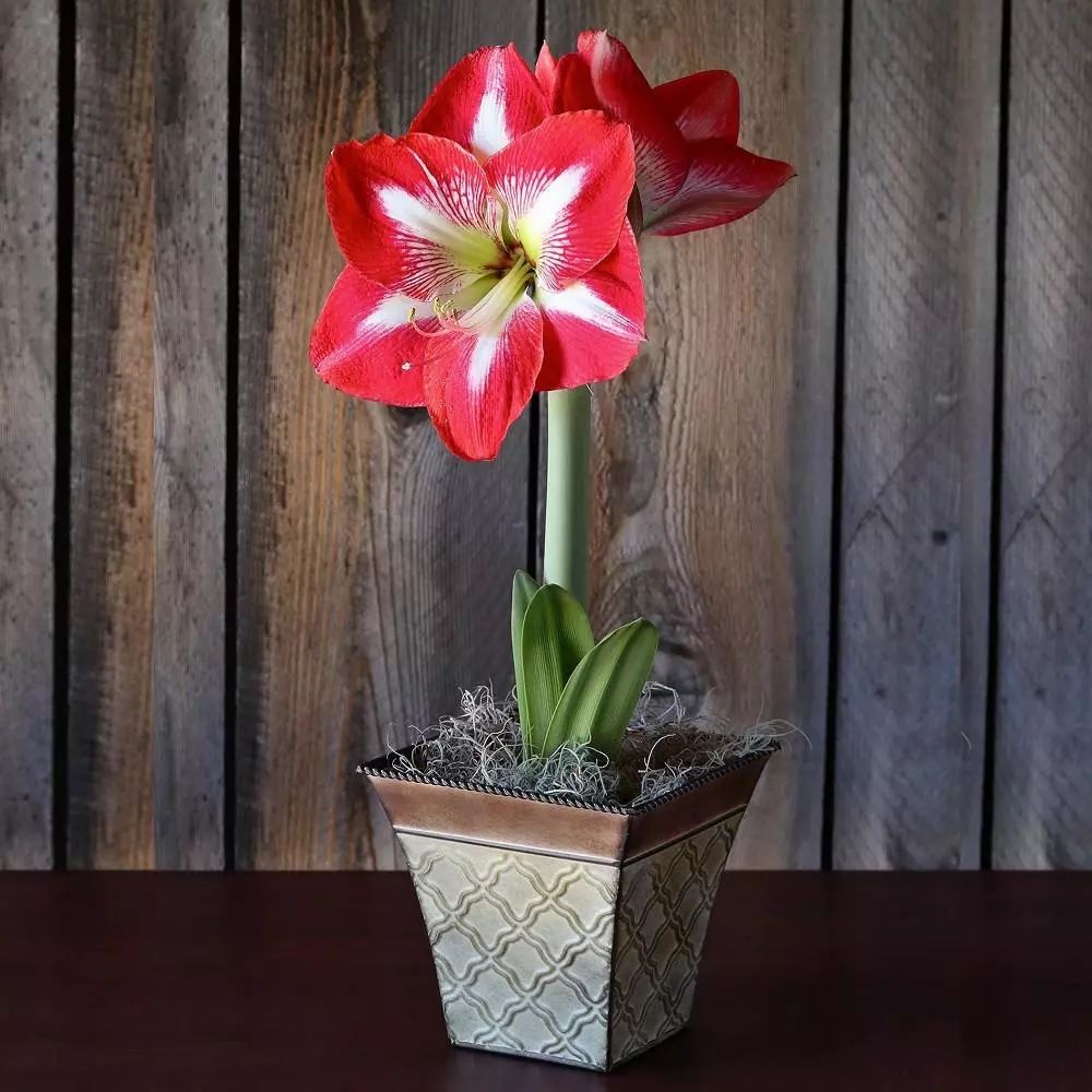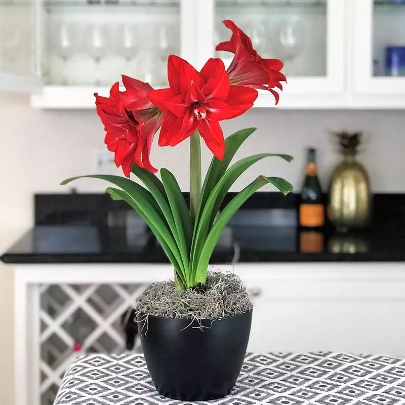 花园里面白雪皑皑,在室内也会有着温暖的环境,只要养护得当,盆栽的朱顶红冬天在室内也能开出靓丽迷人的红色花朵,这其实就是强迫朱顶红更早开花,用室内的温度来欺骗它开出迷人的花朵。