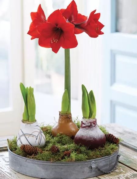 在秋天购买的朱顶红球进栽种到土壤中,一般都是要第二年才能开花,但是下面这种方法可以让它在冬天的时候开花,在冬天强迫它们开花,就会消耗非常多的能量,不过朱顶红的球茎比较健壮,第二年重复栽种还是可以不断开花的。