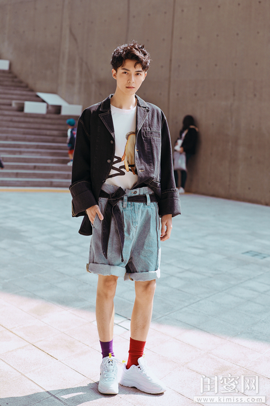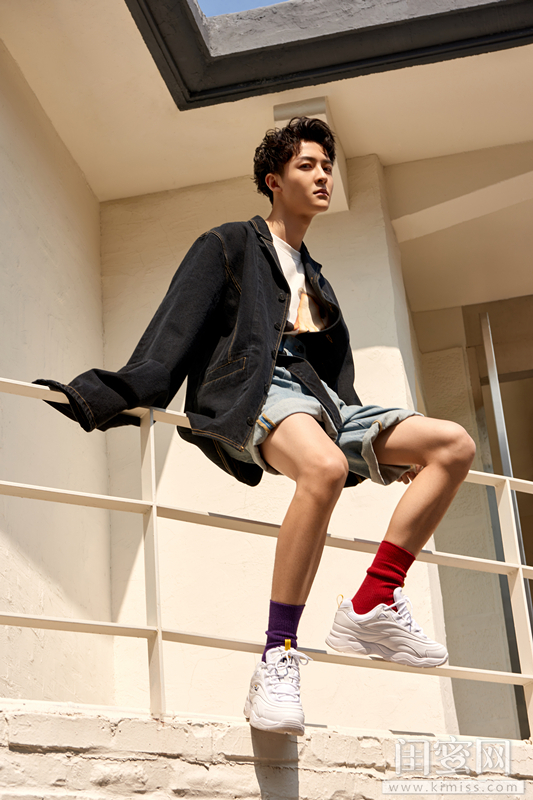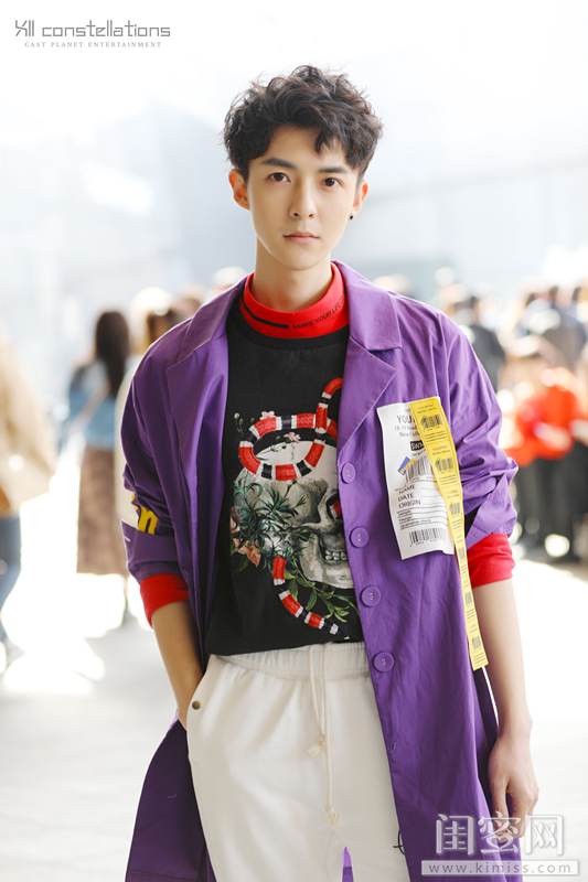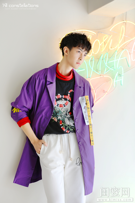 在官方释出的两套造型中,管栎先以简约白T打底,搭以剪裁得体的黑色外套及及膝短裤,腰间别出心裁的蝴蝶结腰带设计别具巧思,让整体造型更为亮眼的同时展现极佳身材比例;前一秒还是清新薄荷系学长look,在第二套造型里,管栎又秒变街头嘻哈少年,原本夸张炸眼的紫黑撞色搭配被少年眉宇间笃定沉稳的气质消解,率性不羁间青春活力气息毕现。
