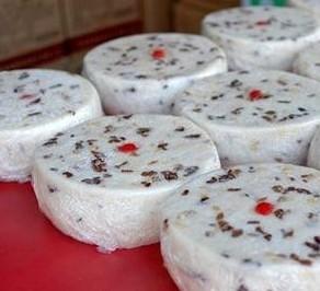 4、和料:和料是指为崇明糕中添加所需所有辅料,加水拌成糊状。其中白糖和红糖是必须的(也有不加糖的崇明糕,糖尿病人可食用,但是很难蒸熟,相当考验蒸糕师傅的功力),另根据需要添加红枣,蜜饯,核桃仁,红绿果脯丝、桂花、猪油、松仁、瓜子等,但最大众化的配料是赤豆,可以制成豆沙备用。