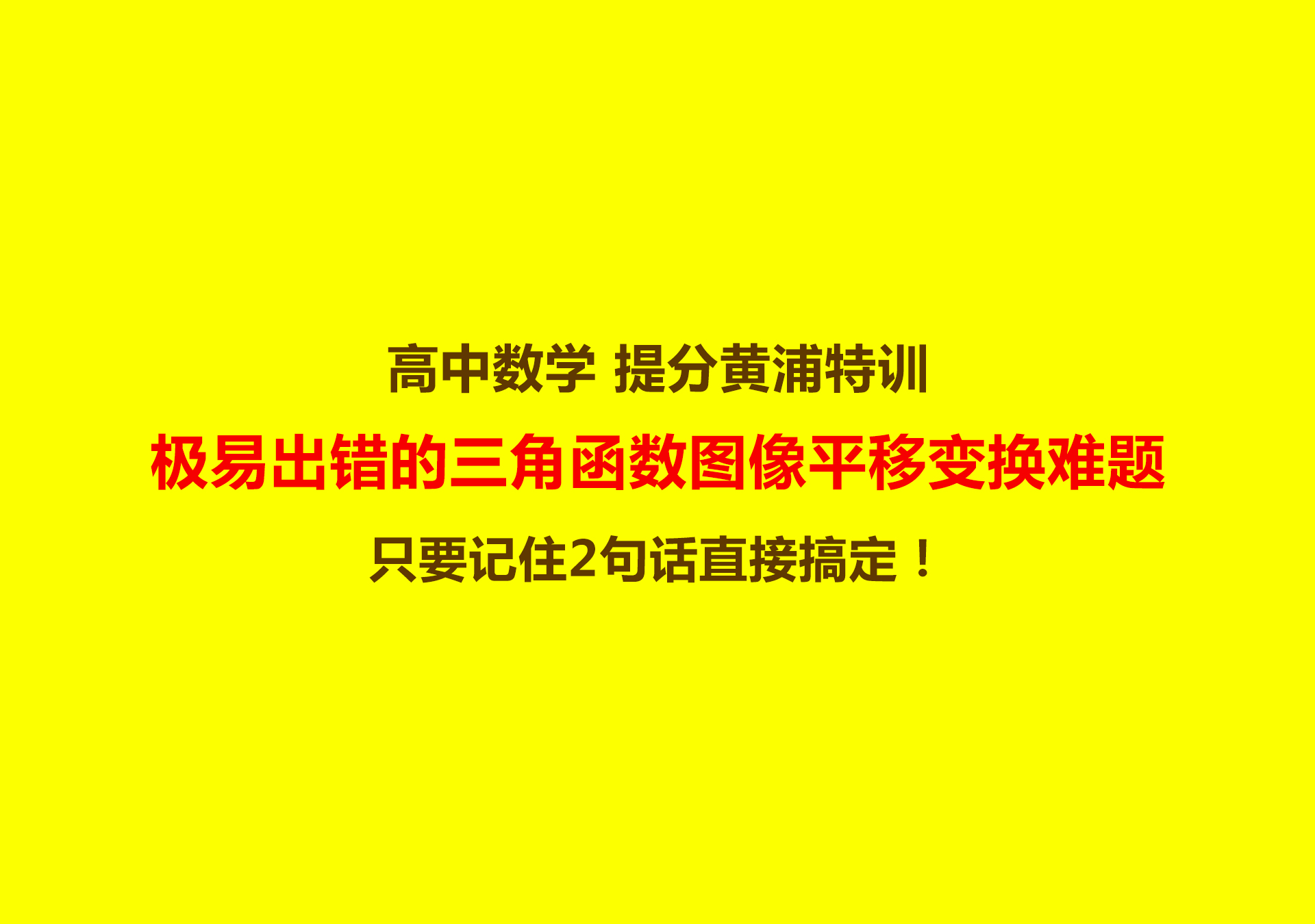 大家好,今天我们来讲一下有关三角函数图像平移变换问题,其实这个题型很多同学极容易出错误,今天给大讲一个技巧,只要大家将这个技巧理解透彻,这类题型就没有任何问题了。