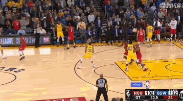 值得一提的是,进入加时赛似乎也让当值裁判非常紧张。在加时赛里,裁判出现了多次错判、漏判。其中最为明显的当属于加时赛结束前30.9秒,杜兰特飞身救球,但他救球时脚已经踩在了场外。尽管哈登当时就提出了质疑,但裁判无视了杜兰特的这次明显失误,把球权判给了勇士队。