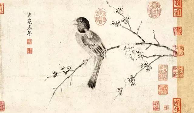 宋徽宗赵佶《写生珍禽图卷》第一段:杏苑春声