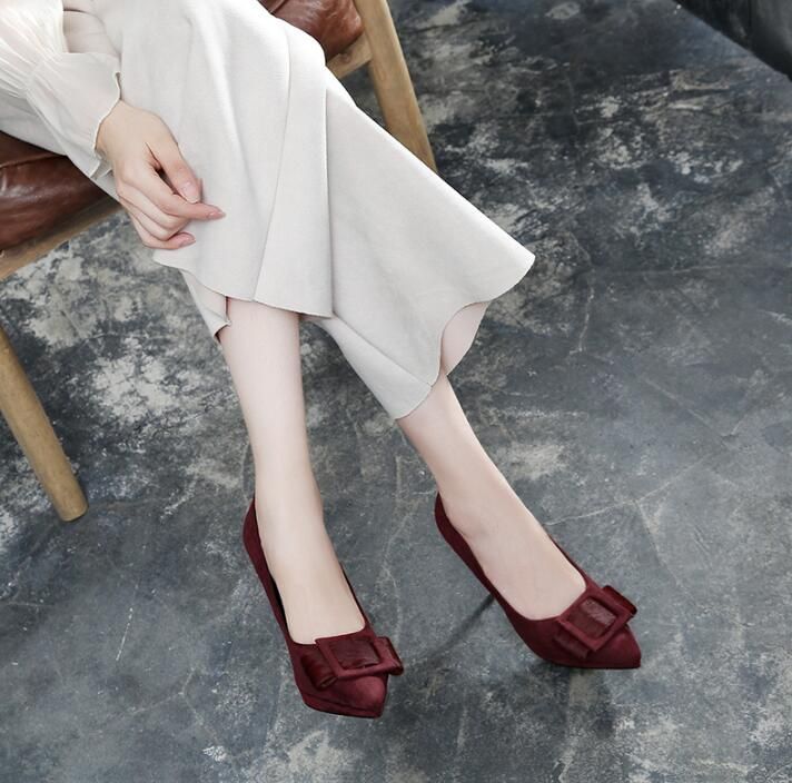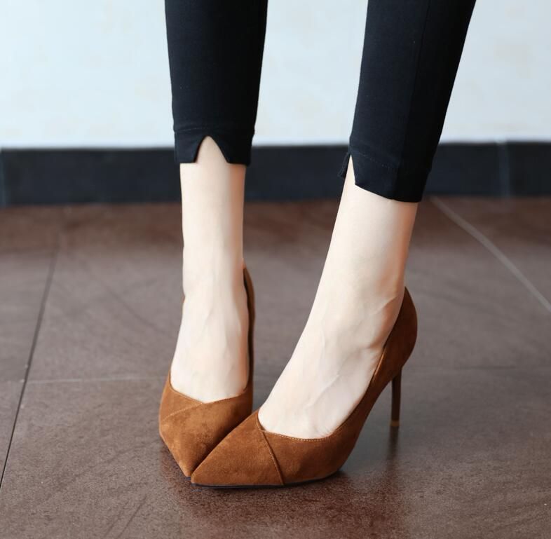 浅口尖头的高跟鞋,高挑的细高跟,散发迷人的气质。磨砂绒面的运用,为寒冷的秋冬带来了一抹温暖洋气的风景线。采用了交襟的设计,衍生出浓烈的知性风情,同时衬得脚背线条白皙撩人。与鞋面同色的细跟拼接,彰显出高端的品味感,橡胶鞋底的使用,行走稳固安全。