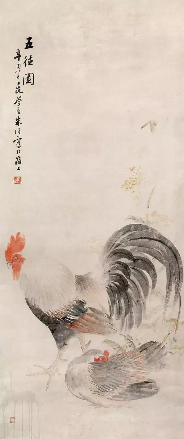 朱偁 (1826-1900,一作1826-1899),清代画家,早岁名琛,后更今名,字梦庐,号觉未,别署鸳湖散人、玉溪外史、玉溪钓者、鸳湖画史、胥山樵叟,浙江嘉兴人。工花鸟,初法张熊,暇辄借临,熊自视几不能辨。及王礼得名以超脱胜张熊之工细,遂改从礼,兼得张画之华瞻工细与王画之超脱飘逸,神似华岩,成为名家,在上海书画界享有盛誉。题字款识,莫不酷似。晚年精进,惜未脱霸气。卒年七十五(一作七十四)。