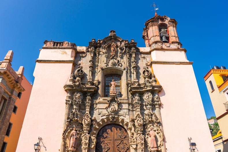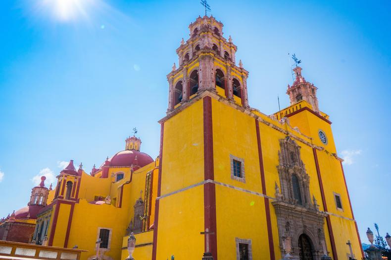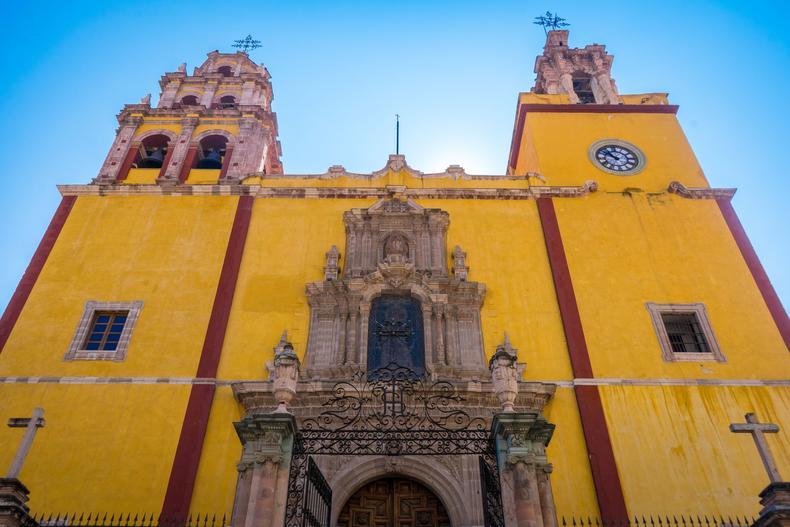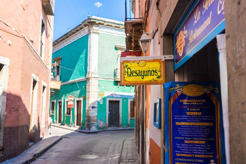 瓜纳华托小城其实不大,步行大半天估计就能走完小城的主街道了。当然你要是想再花点时间,当然可以慢悠悠的,在主街道的每个支巷里再去谈一谈究竟,应该会看到很多生活在这里的人们的样子吧。 吃完一顿美美的早餐,我就准备出门闲逛了。先去看看教堂和大学吧,毕竟在小城的景色里,这两座建筑最为显眼了。