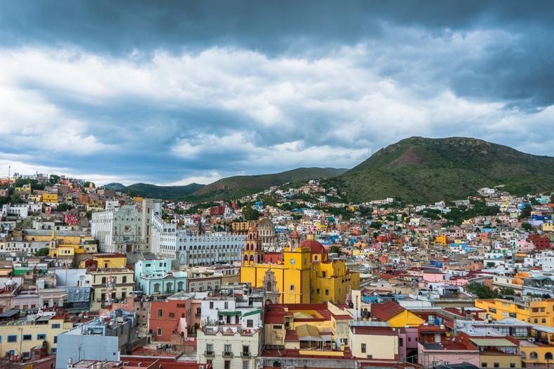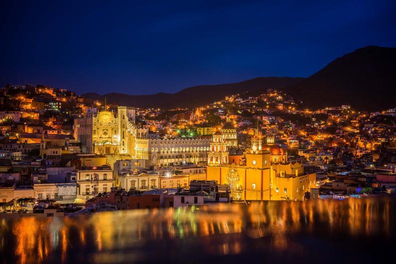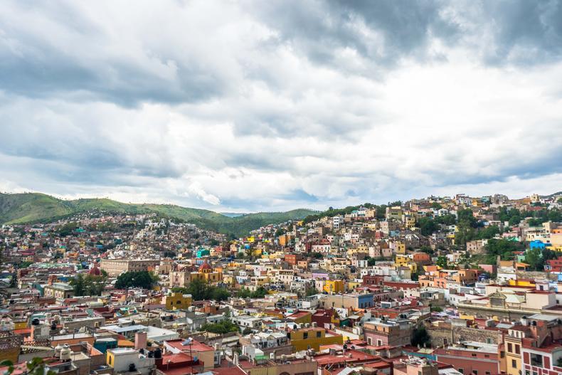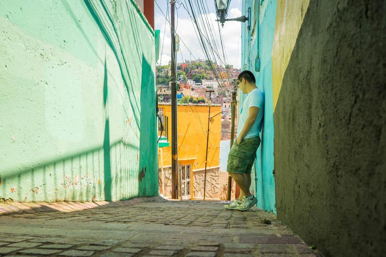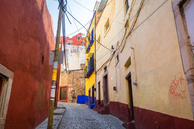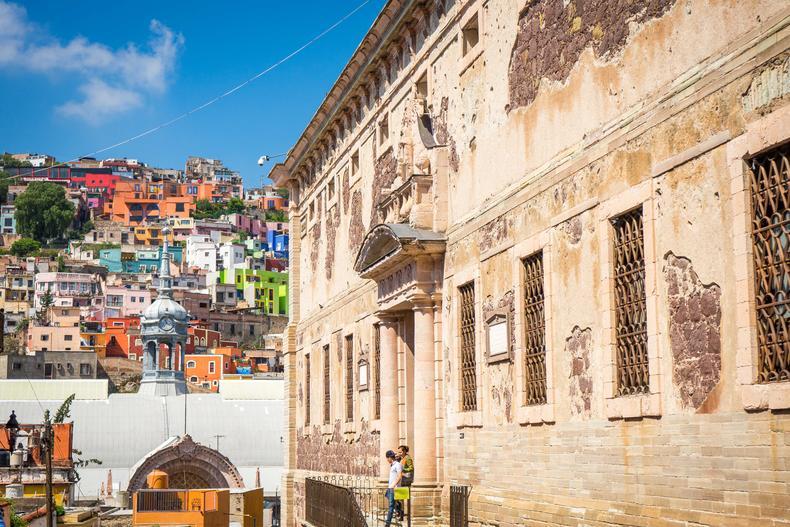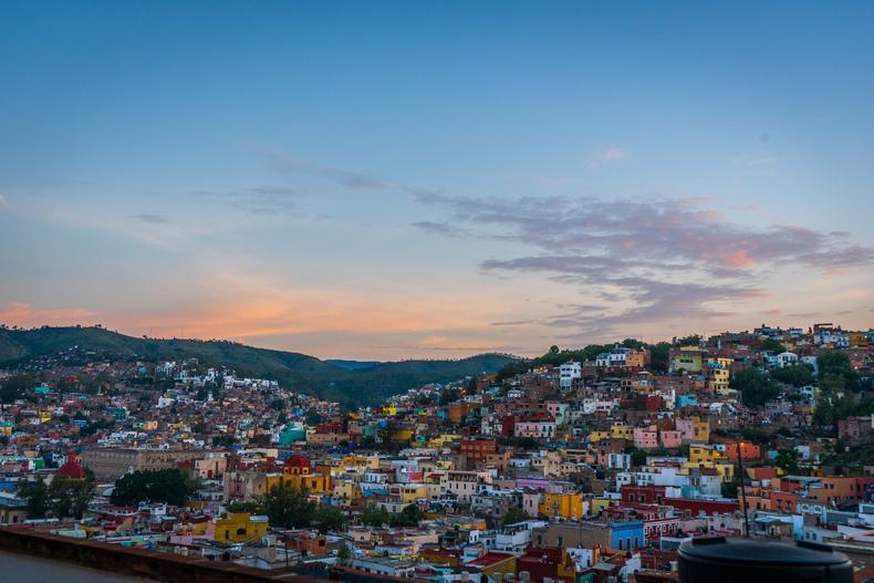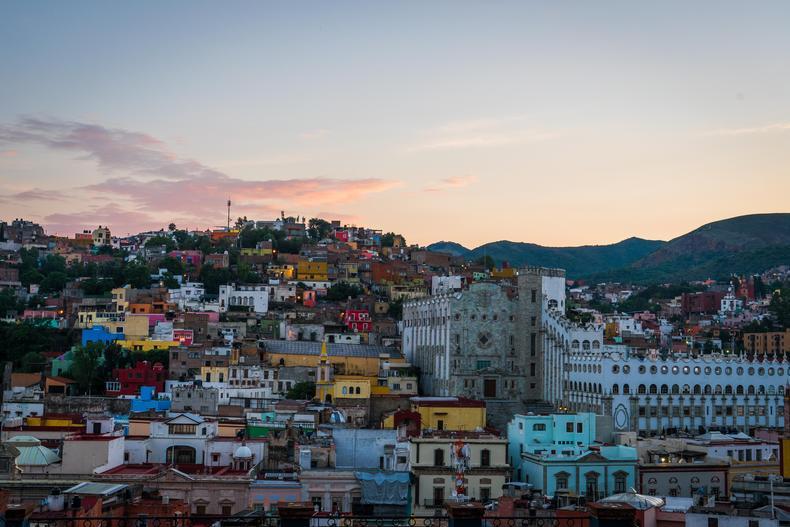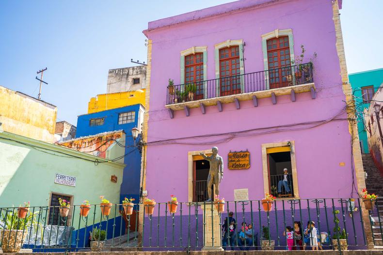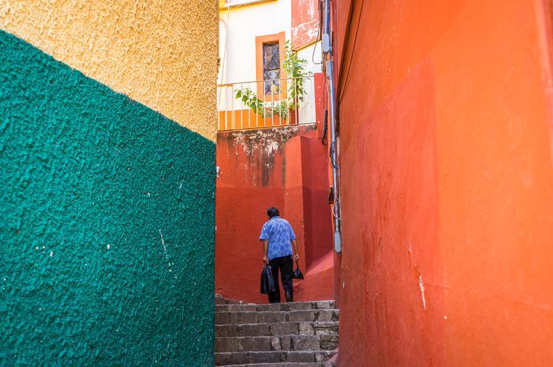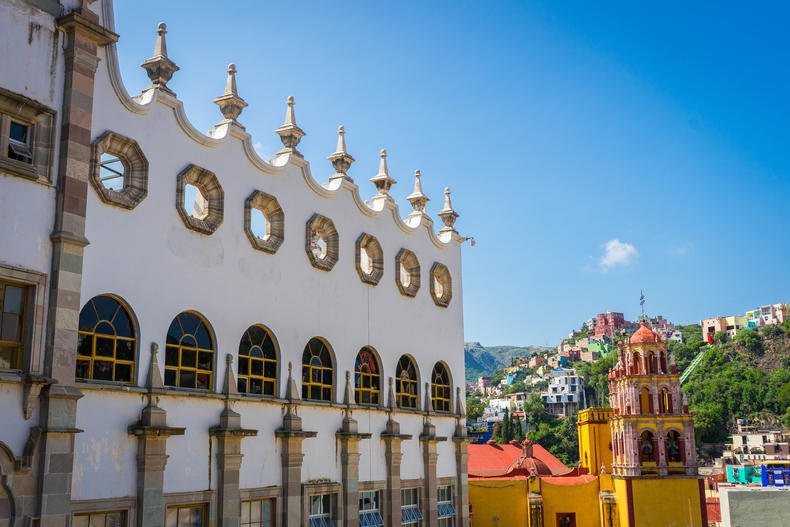 于是,从纽约出发,经过6个小时的飞行到达墨西哥城,在经过4个小时的巴士到达瓜纳华托车站,再半个小时的士我终于像是进入一个异世界的小镇! 为什么瓜纳华托如此色彩斑斓,好像上帝打翻了调色盘一般?瓜纳华托曾经属于西班牙人殖民统治时期,当年便是墨西哥的经济重镇,当年西班牙人为了采矿修建的隧道至今仍是城市的交通动脉,见证着这座古老山城的昔日辉煌。 而源源不断的财富也带动了瓜纳华托文化的繁荣兴盛,生活在这里的西班牙人把小城打造的人文气息浓郁,随处可见的剧院、广场和雕塑,所以整个小城散发出的都是西班牙风格的五颜六色的建筑。加上瓜纳华托依山而建,各种颜色可爱的小楼房在群山之间错落有致,令人喜爱。
