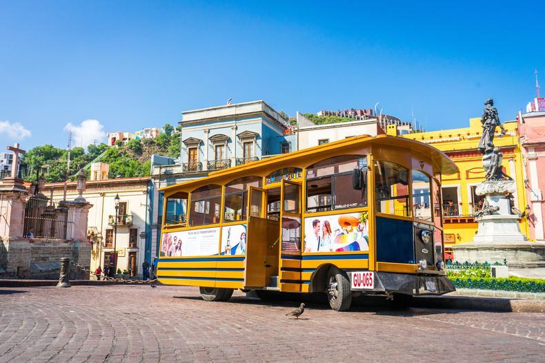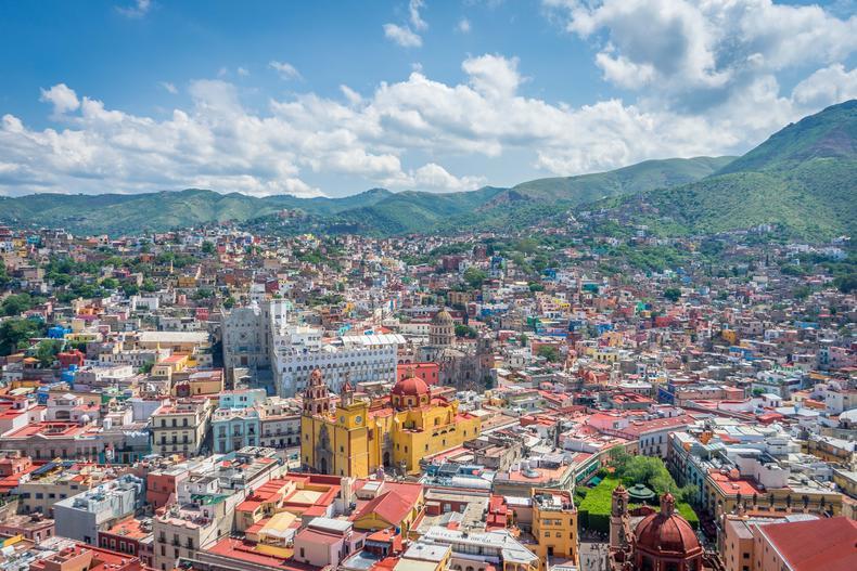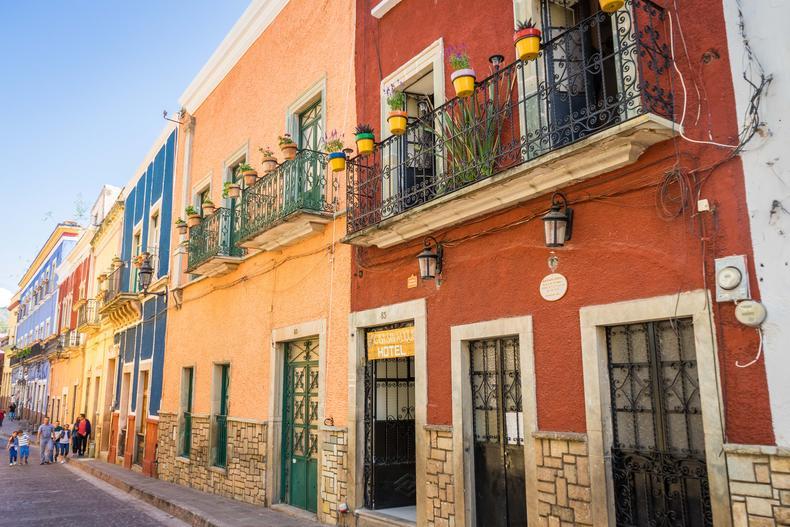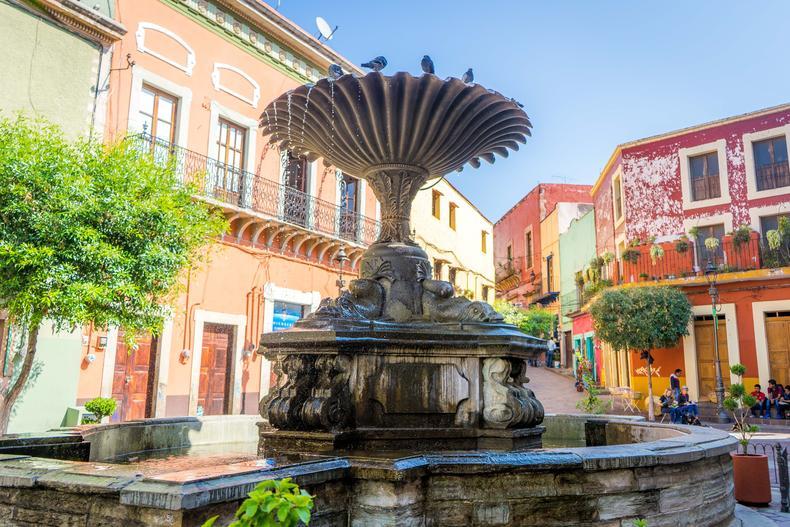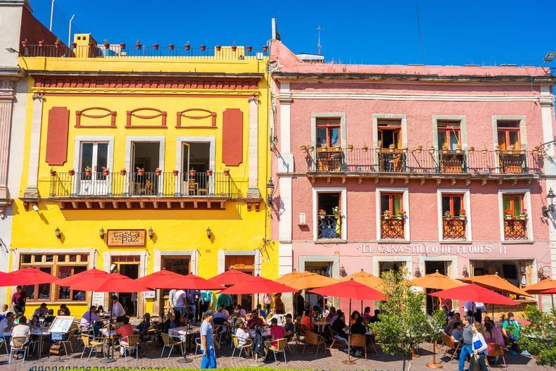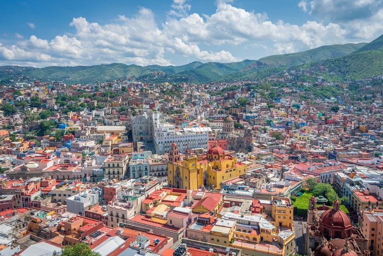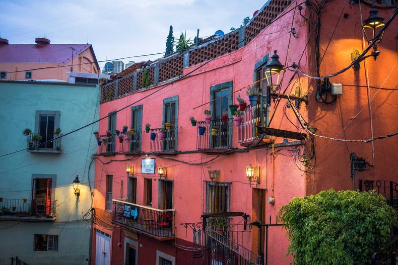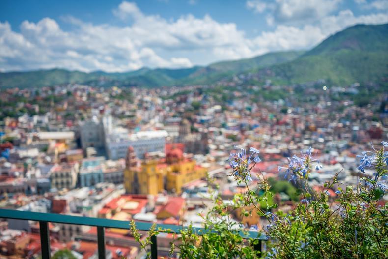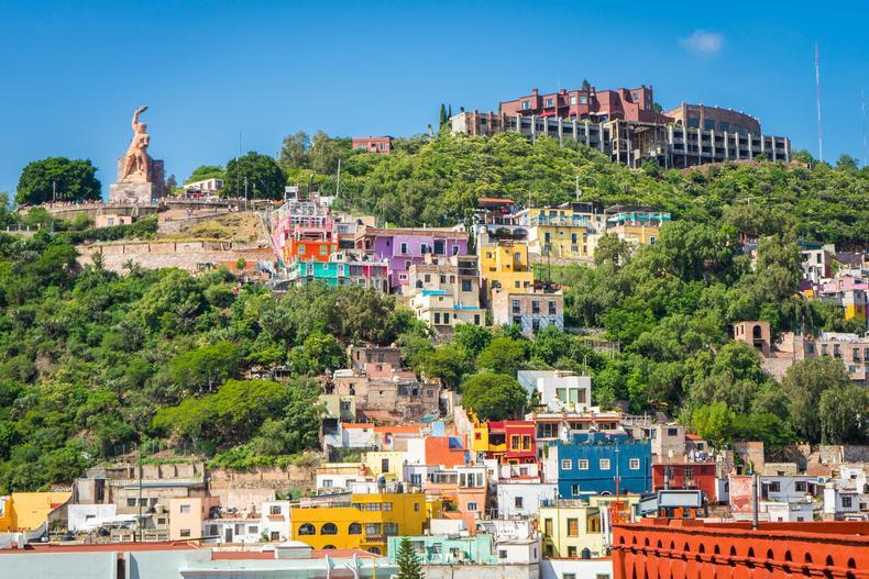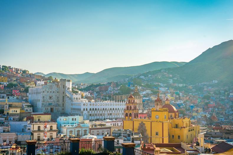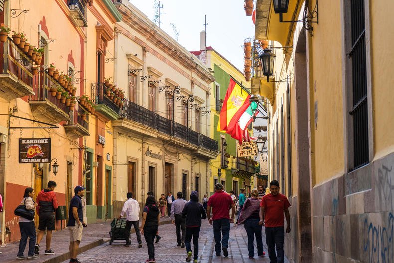 于是,从纽约出发,经过6个小时的飞行到达墨西哥城,在经过4个小时的巴士到达瓜纳华托车站,再半个小时的士我终于像是进入一个异世界的小镇! 为什么瓜纳华托如此色彩斑斓,好像上帝打翻了调色盘一般?瓜纳华托曾经属于西班牙人殖民统治时期,当年便是墨西哥的经济重镇,当年西班牙人为了采矿修建的隧道至今仍是城市的交通动脉,见证着这座古老山城的昔日辉煌。 而源源不断的财富也带动了瓜纳华托文化的繁荣兴盛,生活在这里的西班牙人把小城打造的人文气息浓郁,随处可见的剧院、广场和雕塑,所以整个小城散发出的都是西班牙风格的五颜六色的建筑。加上瓜纳华托依山而建,各种颜色可爱的小楼房在群山之间错落有致,令人喜爱。