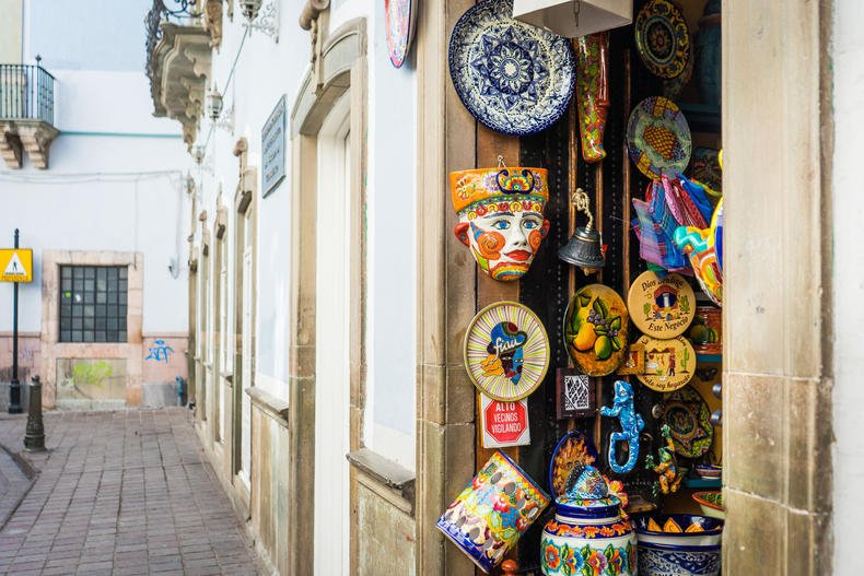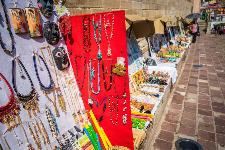 再闲逛看到了这个谷仓博物馆,不算特别有名但建筑缺陷的古老又宏伟。这原是一个瓜纳华托古老的粮食仓库,建成于1809年。后来被改建成了一个博物馆,里面有关于瓜纳华托的历史人文以及出土的一些文物,博物馆的外面有人摆设了小摊贩卖手工艺品。