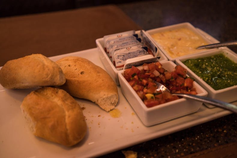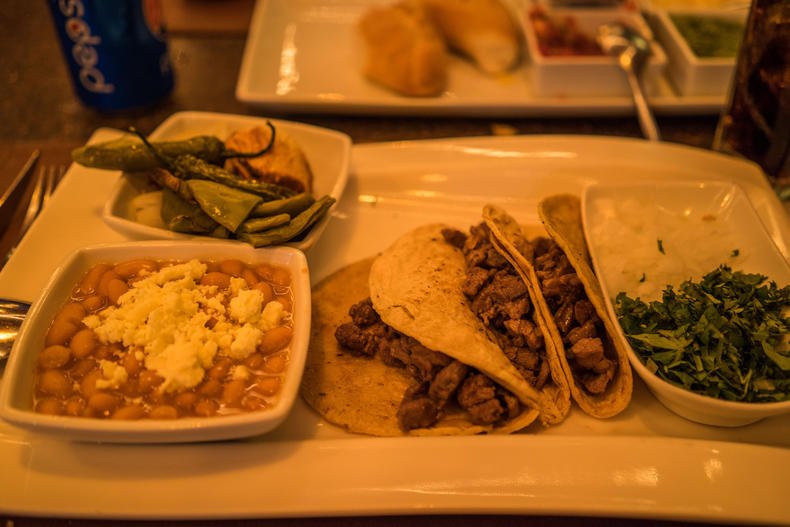 虽然对墨西哥的菜单有点大眼瞪小眼,加上这里英语的流通度没有那么强,我只能凭感觉点一份应该是taco的套餐吧。还真被我蒙对了,国内吃墨西哥卷都是帮你配好了蔬菜肉酱之类的卷好端上,这儿就得靠你自个儿去发挥了,每样东西都给你准备好了,就看你自己怎么卷着吃喽,我最爱那个绿色的酱,清新开胃!每个用餐的人还会赠送面包,我一开始以为这是收费的呢… 坐在室外用餐,不仅被餐厅里的音乐气氛带动,加上还在等位的顾客的聊天声,服务员不停忙碌的身影都觉得好不欢腾!想要安静的享受一顿晚餐的,这儿可能不适合你哦。当然,在周围这种氛围下,一个人在吃饭的我也是显得有些尴尬…