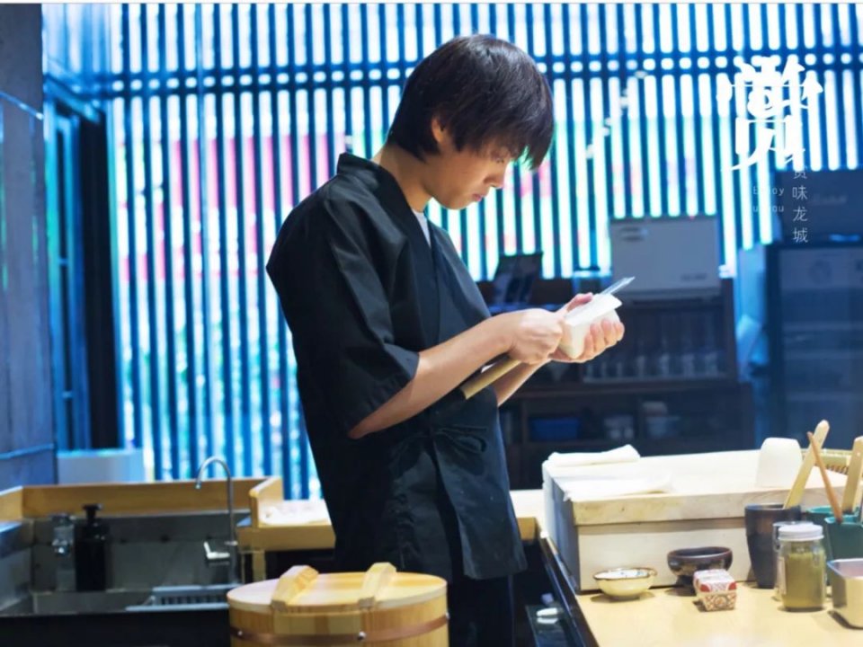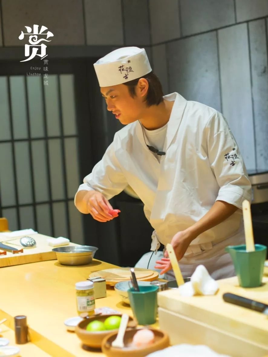 花隐士omakase的主料理长小京师傅,曾就职于北京黑珍珠二钻料理店,服务过不少一线明星,也是小红书的网红料理达人。秉承着“职人精神”,每天重复钻研同一项技艺。一场omakase,需要同时兼顾8位不同客人的用餐进度,根据用餐进度来调整自己的做菜时间。