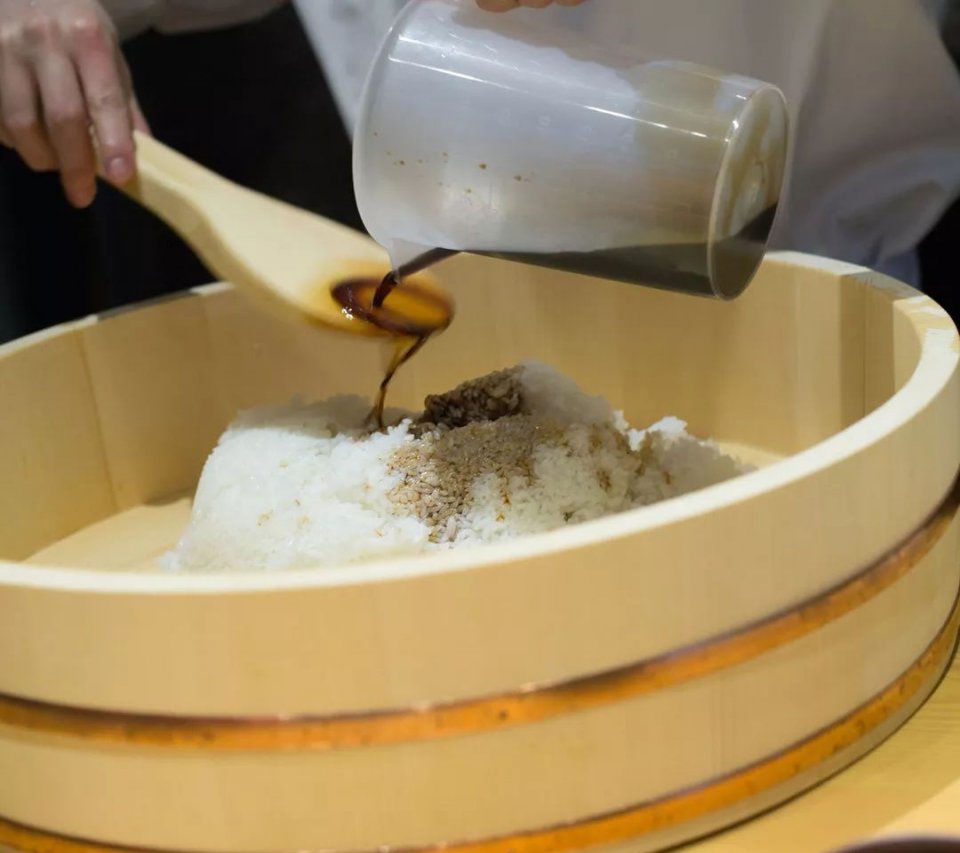 寿司米蒸好后需一直保温,使鱼生肉片与米饭的温度相吻合,达到与人类皮肤温度接近的程度,这样的米饭制作的寿司最为适宜,不会让你吃到“冷饭冰肉”的寿司。