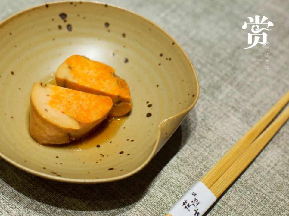 没有想到相貌极其丑陋的鮟鱇鱼,其鱼肝的口感竟如此浓郁鲜美,铺在鱼肝上的是鱼肝的油脂,筷子轻轻一夹,丰盈的橘色油脂便瞬间溢出!