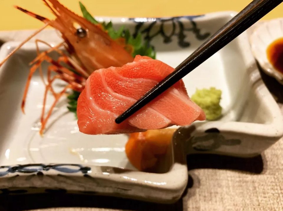 抿一口不算浓烈的清酒,再由深至浅依次品鉴赤身、中腩、大腩等刺身,鱼肉的油脂在口中愈发的浓郁鲜美。