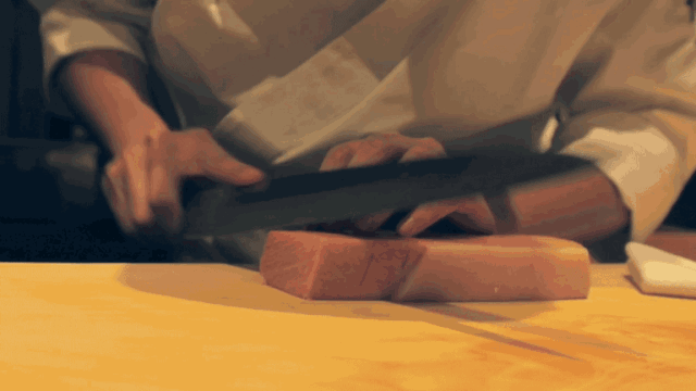 此时,小京正在为今晚的omakase做食材的准备。来自日本爱媛重达超过100公斤的蓝鳍金枪鱼是今晚的重头戏。