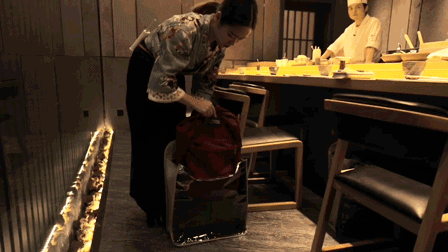 贴心的服务员会在您入坐时,将您的背包和衣服安放好。在花隐士omakase,每一件事对会比您先想一步,提前为您做好服务准备。