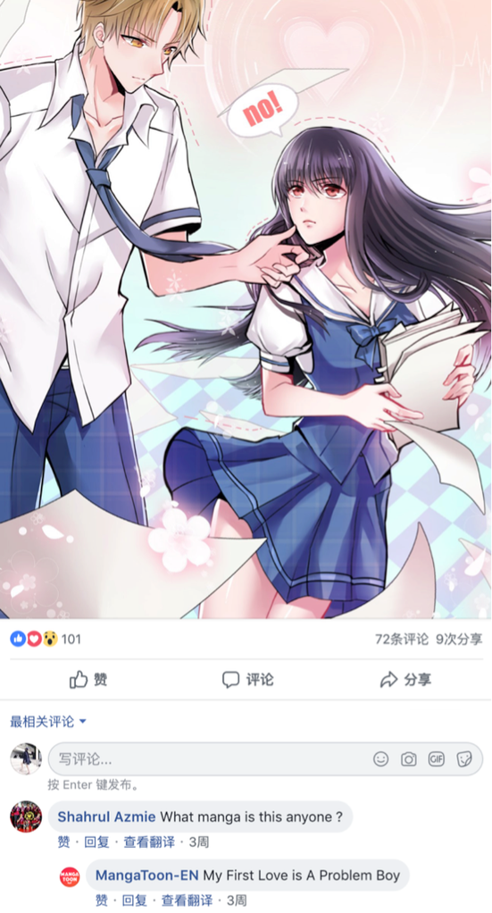 在飞书互动的助力下,漫画堂MangaToon围绕优质漫画作品制作轮播广告,在Facebook上引起了热烈讨论与广泛关注,现有读者及潜在感兴趣的读者在Facebook上点赞、评论主页帖子,交流感想。