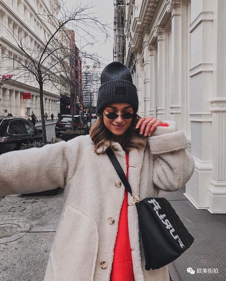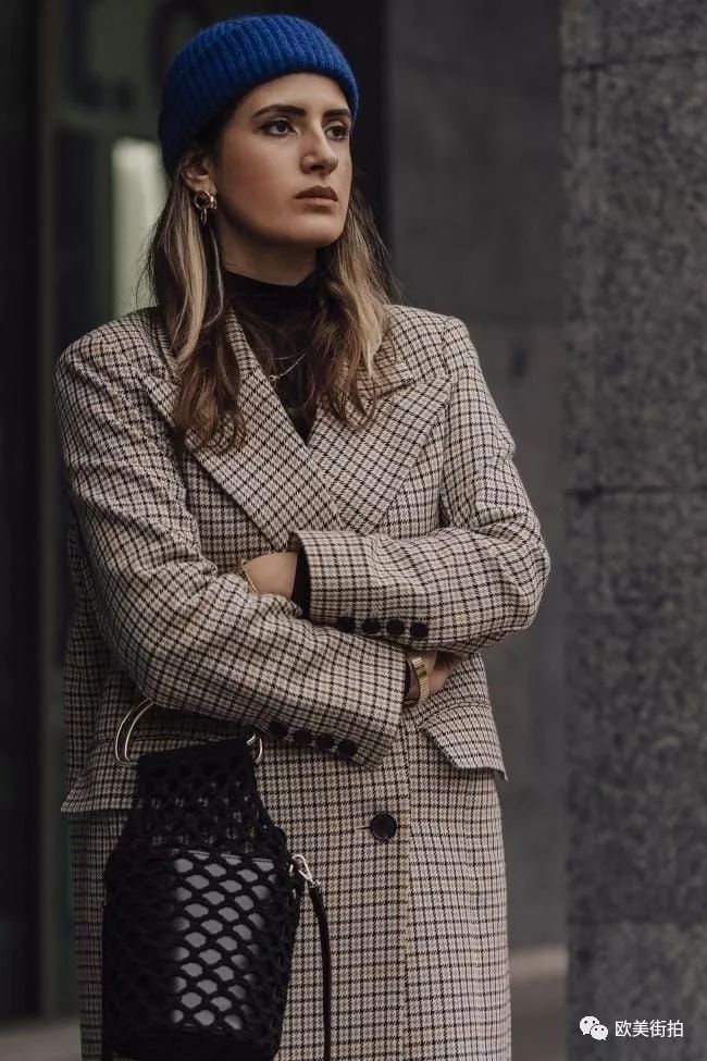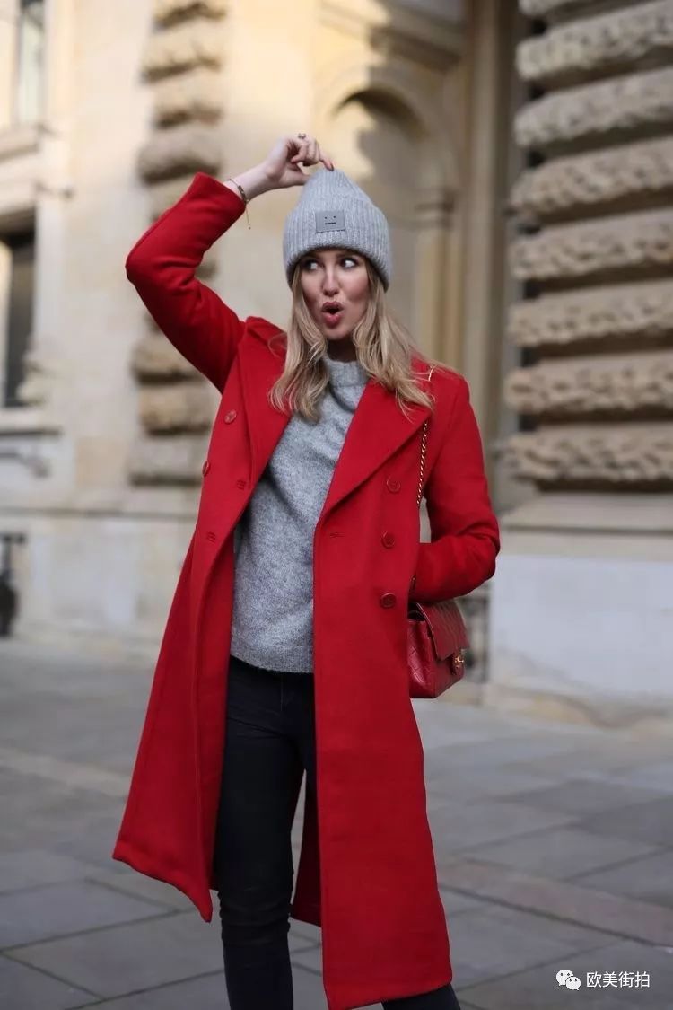 一件有型的大衣戴一顶针织帽,也可成为街拍中的时尚达人,可以选择颜色经典一点的,黑色如果太暗淡,可以灰色或者蓝色!