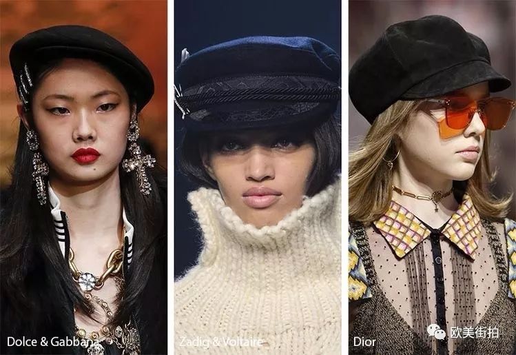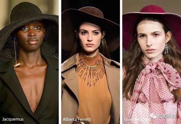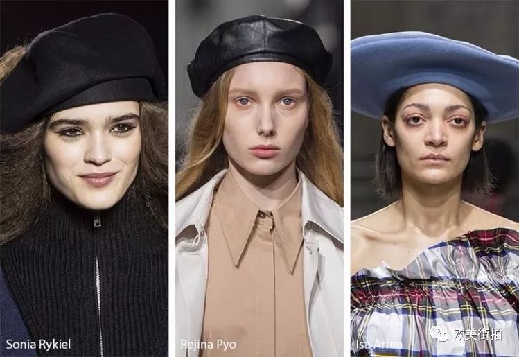 除了贝雷帽,时装周上也出现了很多其它款的时尚帽子,像大边沿的,或者其它款式的,这就得根据姑娘们的个人审美和穿衣习惯了!