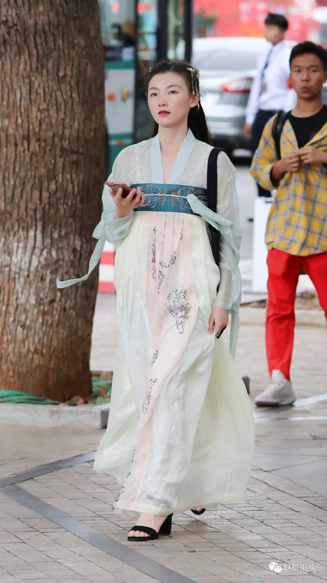 现在的时尚潮流是复古的,不知道从什么时候开始,一些女生对汉服情有独钟,穿上漂亮的汉服,精心的梳妆打扮一番,把自己打扮成一个标准的古典美女,优雅的漫步在街头,成为街头的焦点人物,赚足了回头率。汉服的全称是“汉民族传统服饰“,汉衣冠、华服,是从黄帝即位到明末清初,汉民族的主要服饰,交领右衽,褒衣广袖、系带隐扣等等,这些都是汉服的主要特征。现在大街上我们可以经常见到一些穿着汉服上街的女生,汉服是中国的一种传统文化,漂亮的汉服充满了古典气息,穿汉服的女生散发着古典美女的韵味。今天小编带给大家的街拍就是7位穿汉服的女生,散发浓浓的古典美。