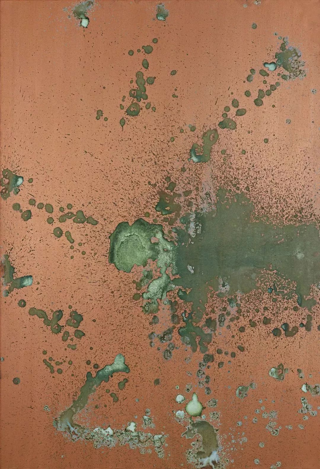 他将尿液洒在涂有铜粉的画布上,