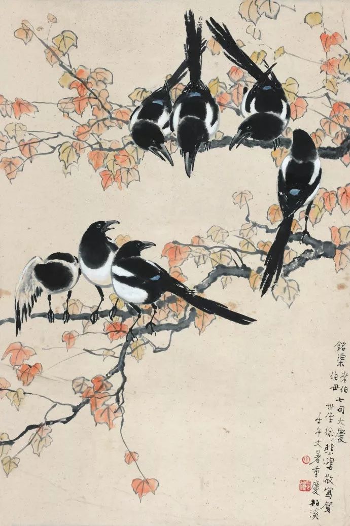 徐悲鸿 红叶喜鹊