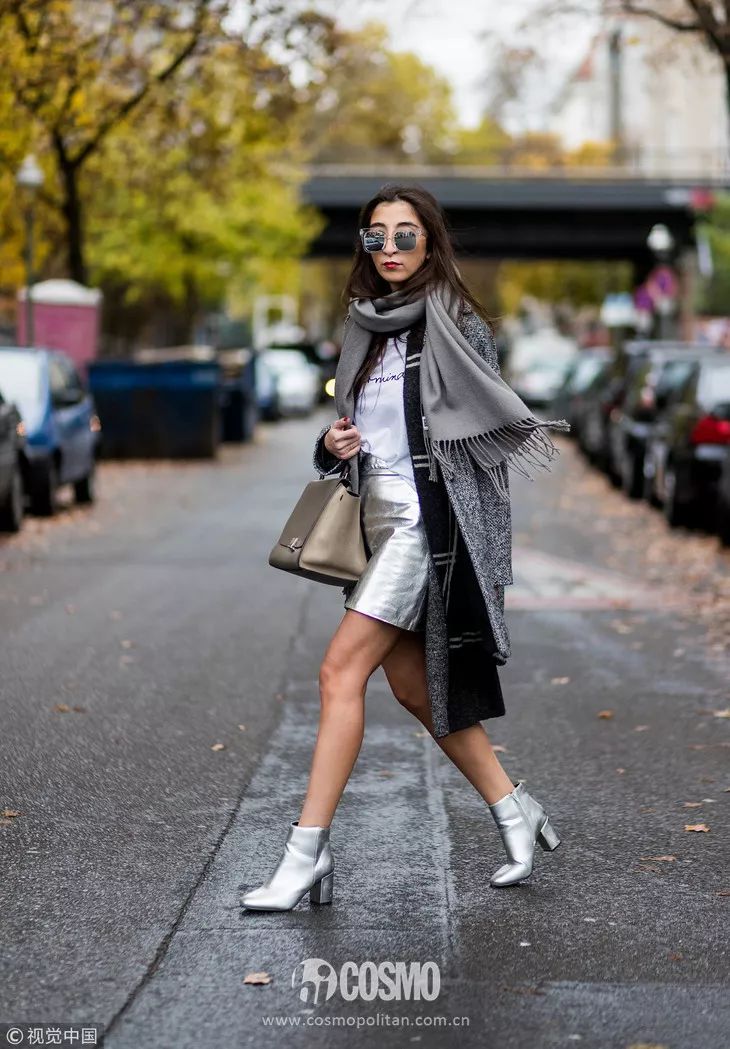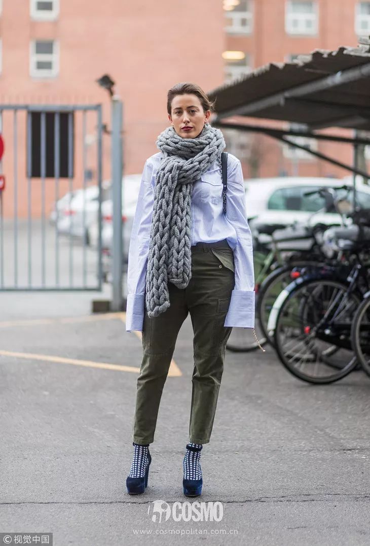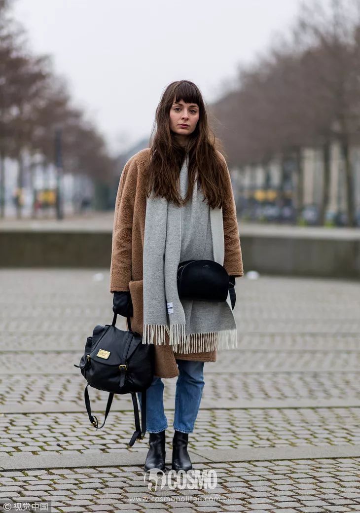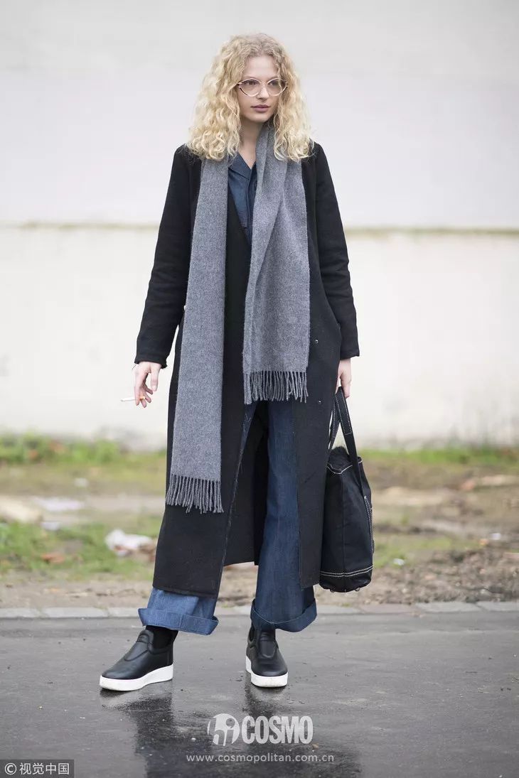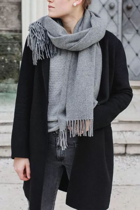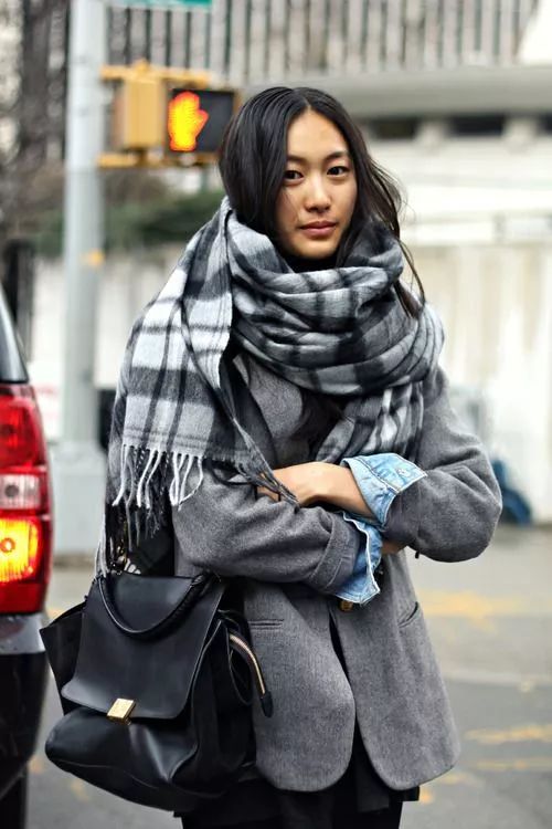 灰色围巾最常见的搭配就是和大衣的组合,呢子大衣搭配灰色围巾显得雅致大气,也更沉稳。街拍中,很多博主都喜欢这样的搭配。不用担心过时,非常耐看。