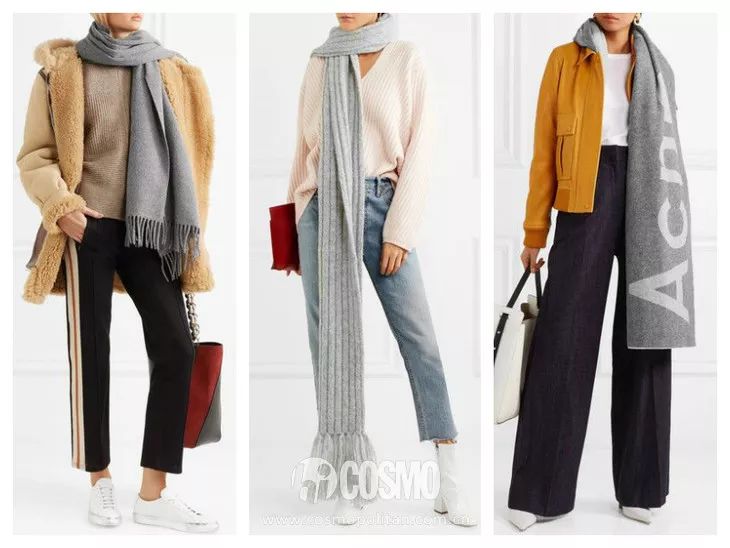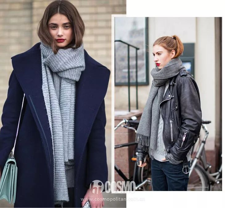 当然,你也可以根据本身的搭配,选择不同材质的灰色围巾。常见的就是羊绒、毛线、以及人造皮草材质。