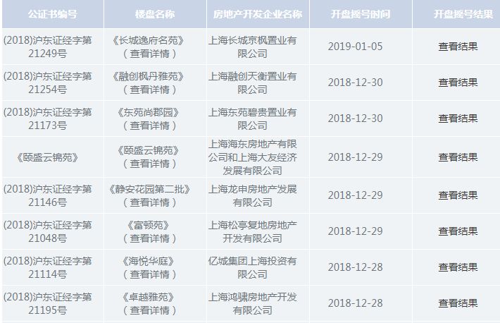 在不知道楼盘备案名的情况下,进入上海市东方公证处,找到“摇号公证法律服务”,就可以看到所有楼盘的摇号信息。观察可以发现,大部分楼盘的备案名与推广名都有相似之处,如长城逸府名苑就是长城逸府的“真身”,融创枫丹雅苑就是融创壹号公馆的备案名。