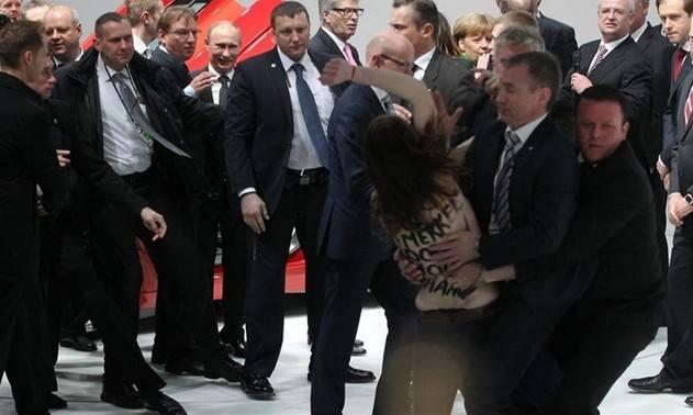 普京每到一个地方,保镖就像影子一样跟随在普京身边。