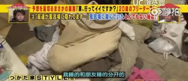 记者在地上发现了两套被褥,塚田说他是和朋友分开睡的。但是两人会在这里一起打游戏,然后玩累了倒头就睡。