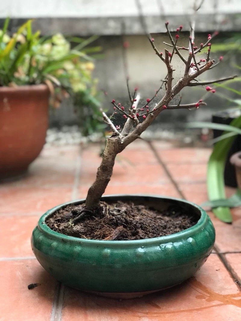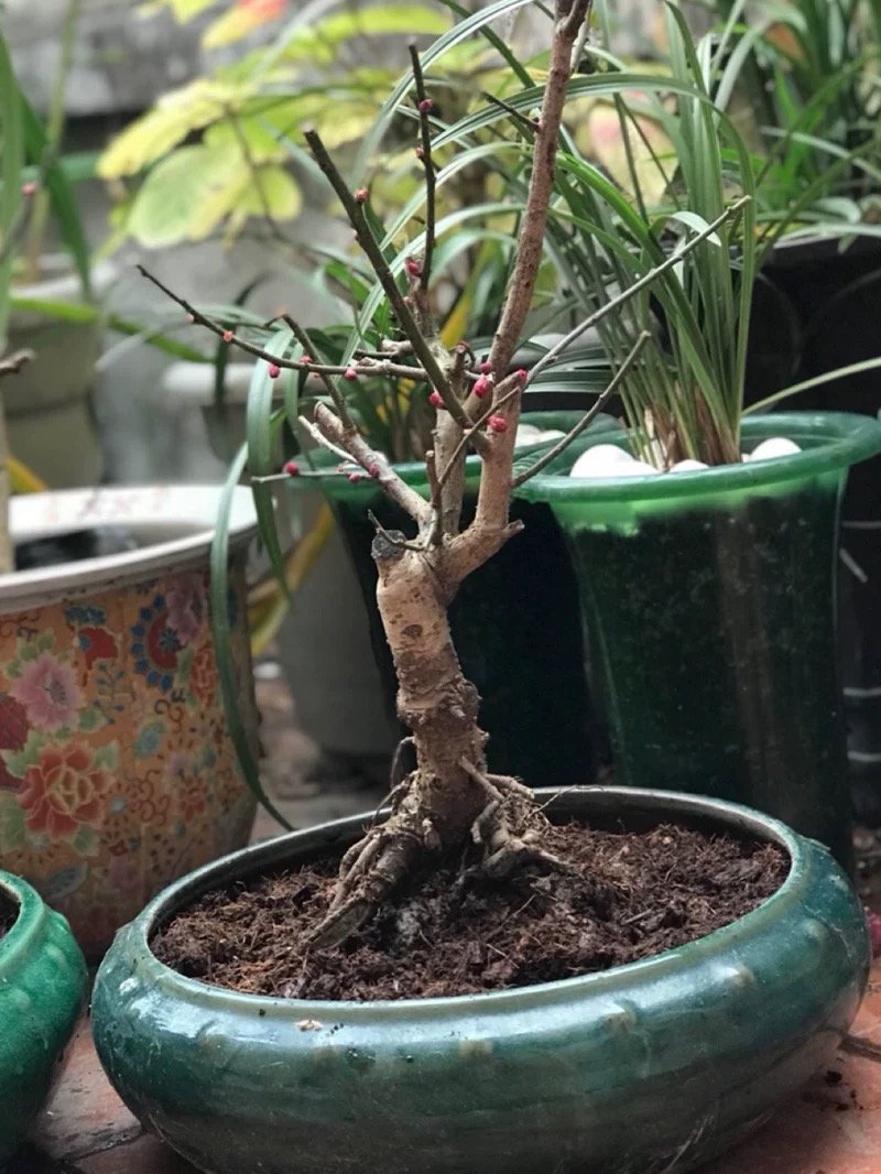 梅花盆栽可用肥沃的园土、腐叶土和粗砂混合调配的混合土,外加少量的骨粉。