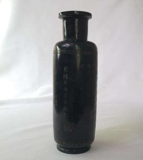 此件藏品为《乾隆御制款和田碧玉棒槌瓶》玉质自然,细腻晶莹,温润而通透,玉料完整无暇。此件玉瓶选材大料,布局工整,显示出精妙绝伦的玉雕工艺。因岁月流逝少,该玉器经过岁月的沉淀有隆重的历史气息,是不可多得的珍品。