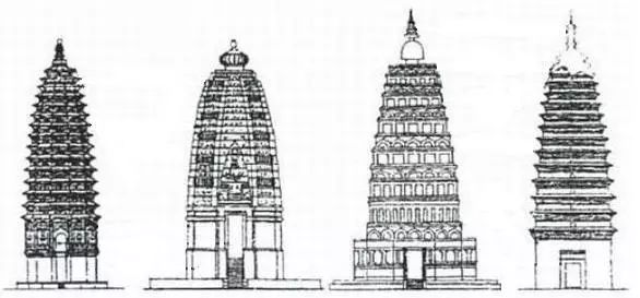 嵩岳寺塔、印度希诃罗神殿、鹿野苑精舍、小雁塔