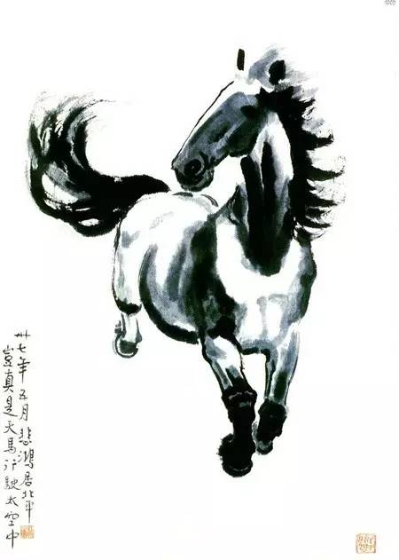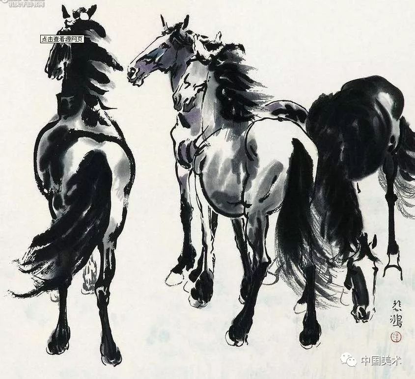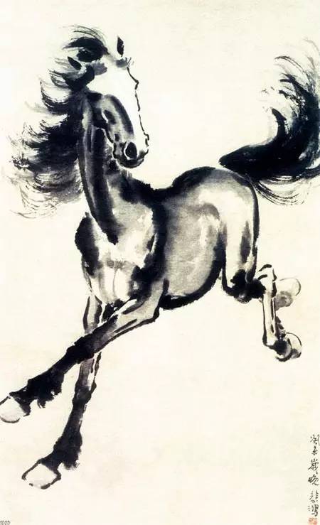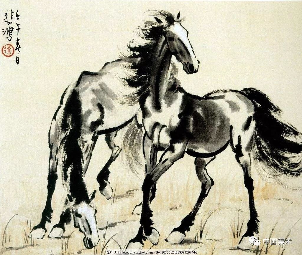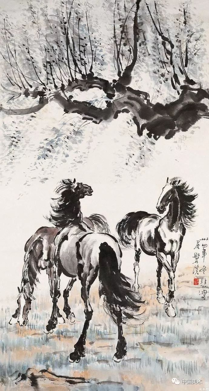 徐悲鸿把西方画的写实和中国画传统笔墨意趣结合起来了,所以才有中西合璧的画法,这是划时代的开先锋的,在中国近代美术这一块,徐悲鸿的作品,他的马是标志性符号,可以说徐悲鸿的马家喻户晓,无人不知。