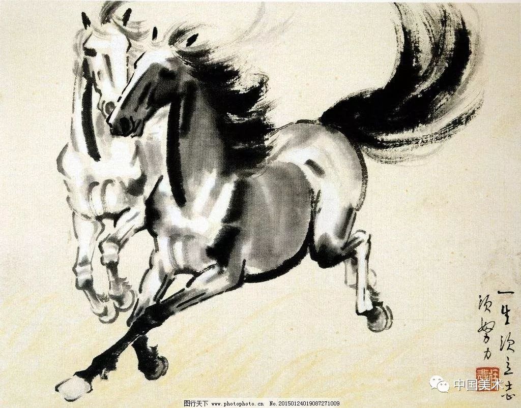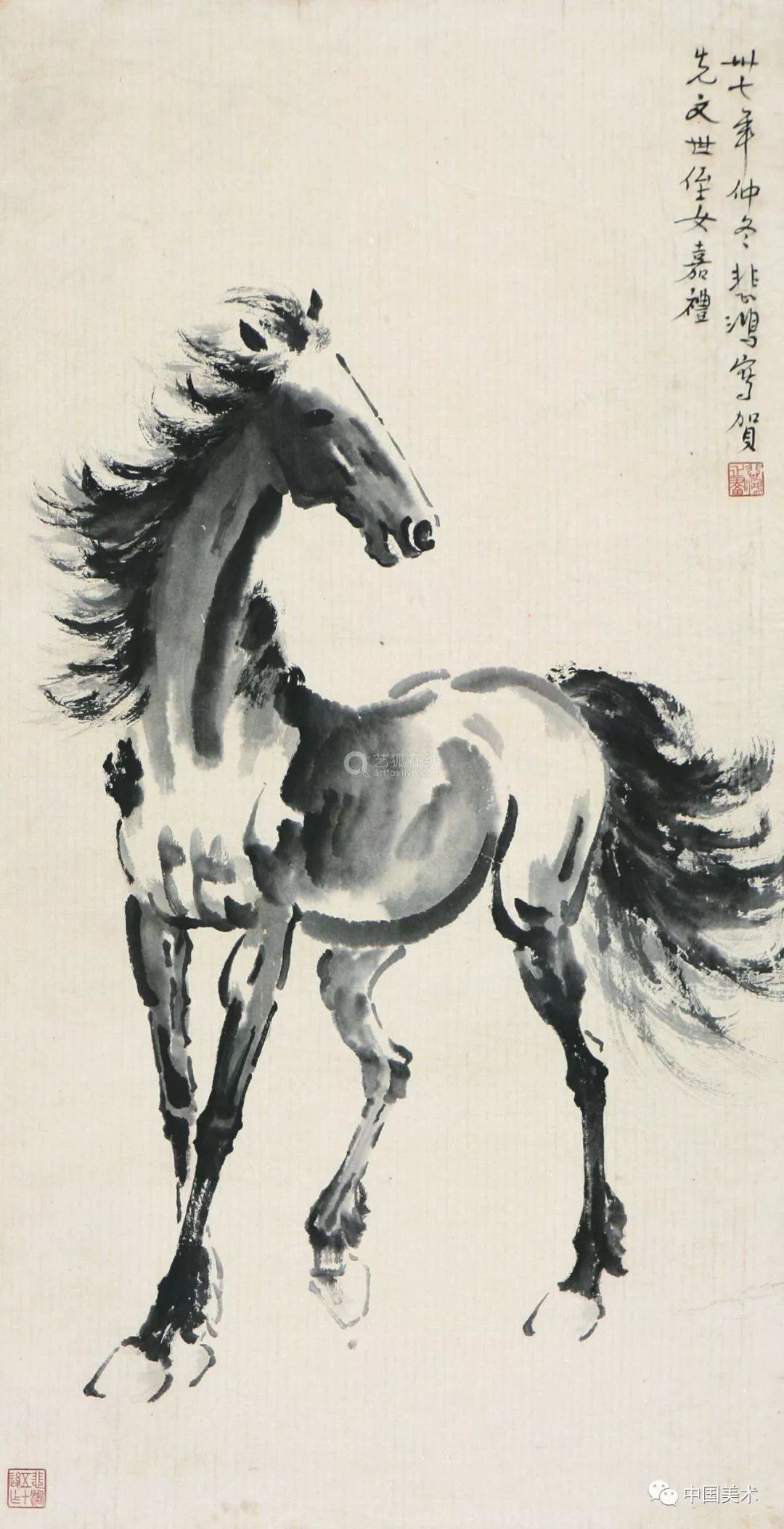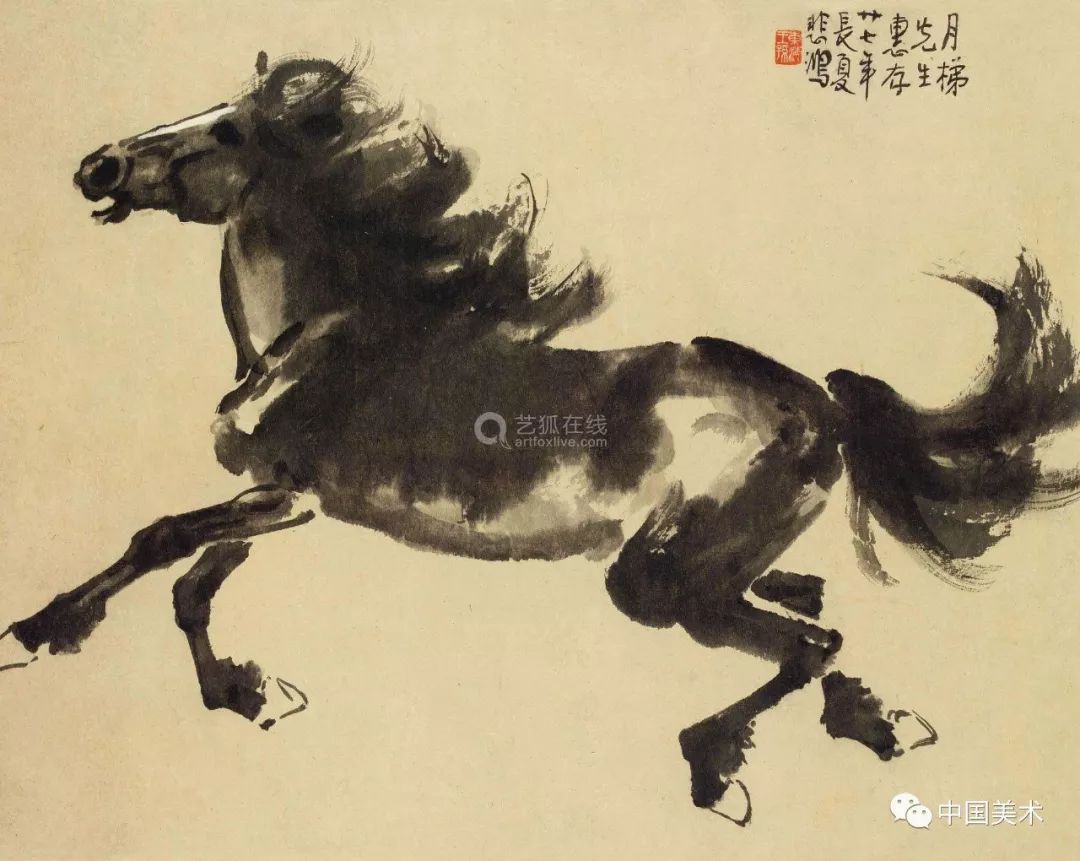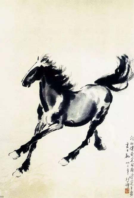 徐悲鸿把西方画的写实和中国画传统笔墨意趣结合起来了,所以才有中西合璧的画法,这是划时代的开先锋的,在中国近代美术这一块,徐悲鸿的作品,他的马是标志性符号,可以说徐悲鸿的马家喻户晓,无人不知。