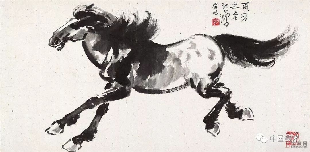 徐悲鸿画马的特点,首先就是准确,他把马的骨骼肌肉、真实结构表现的飞非常准确。第二个特点,徐悲鸿的作品非常有力。