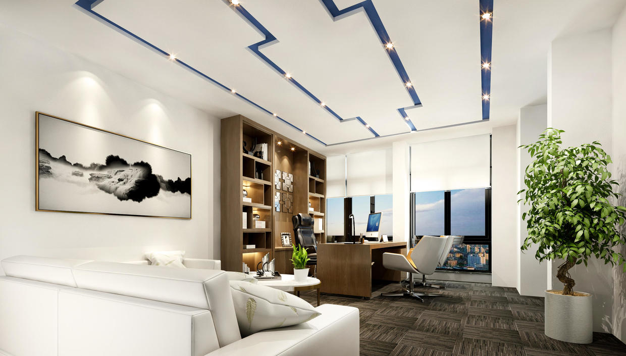 复合空间常常是办公室内二次空间的限定空间,能够使得大空间中包括小空间,既丰富了空间层次,又可以满足办公室内工作的各项需求。